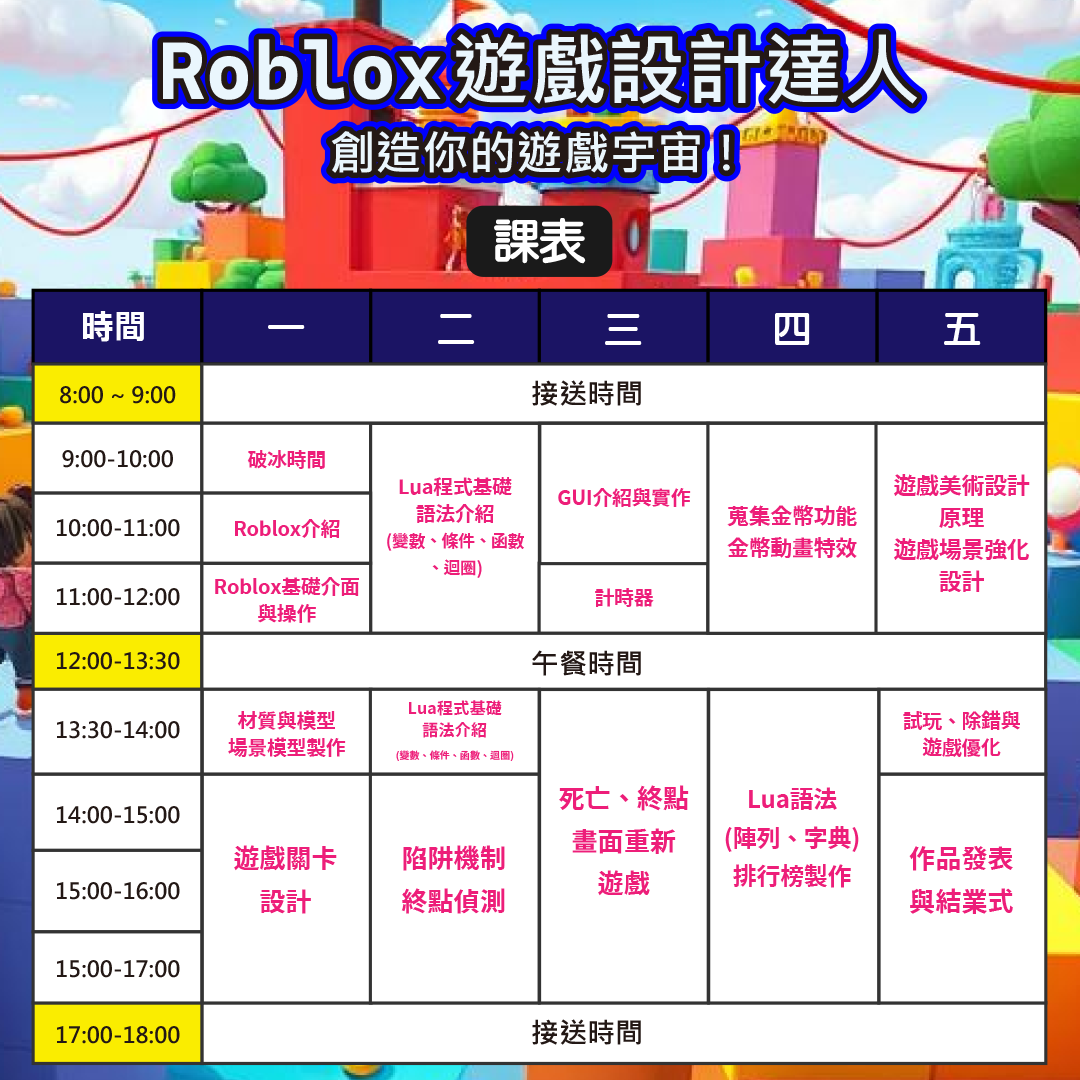 上午課程 (STEAM 遊樂場):上午 9 點到中午 12 點,早上 8 點即可送到教室