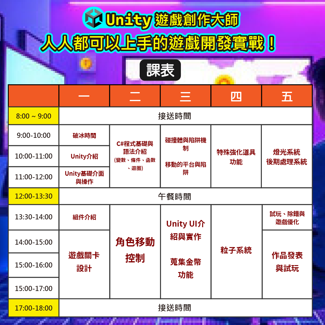 時間:2/2 ~ 2/6,每天上午 9 點到下午 5 點 (含午餐),前後一小時為接送時間