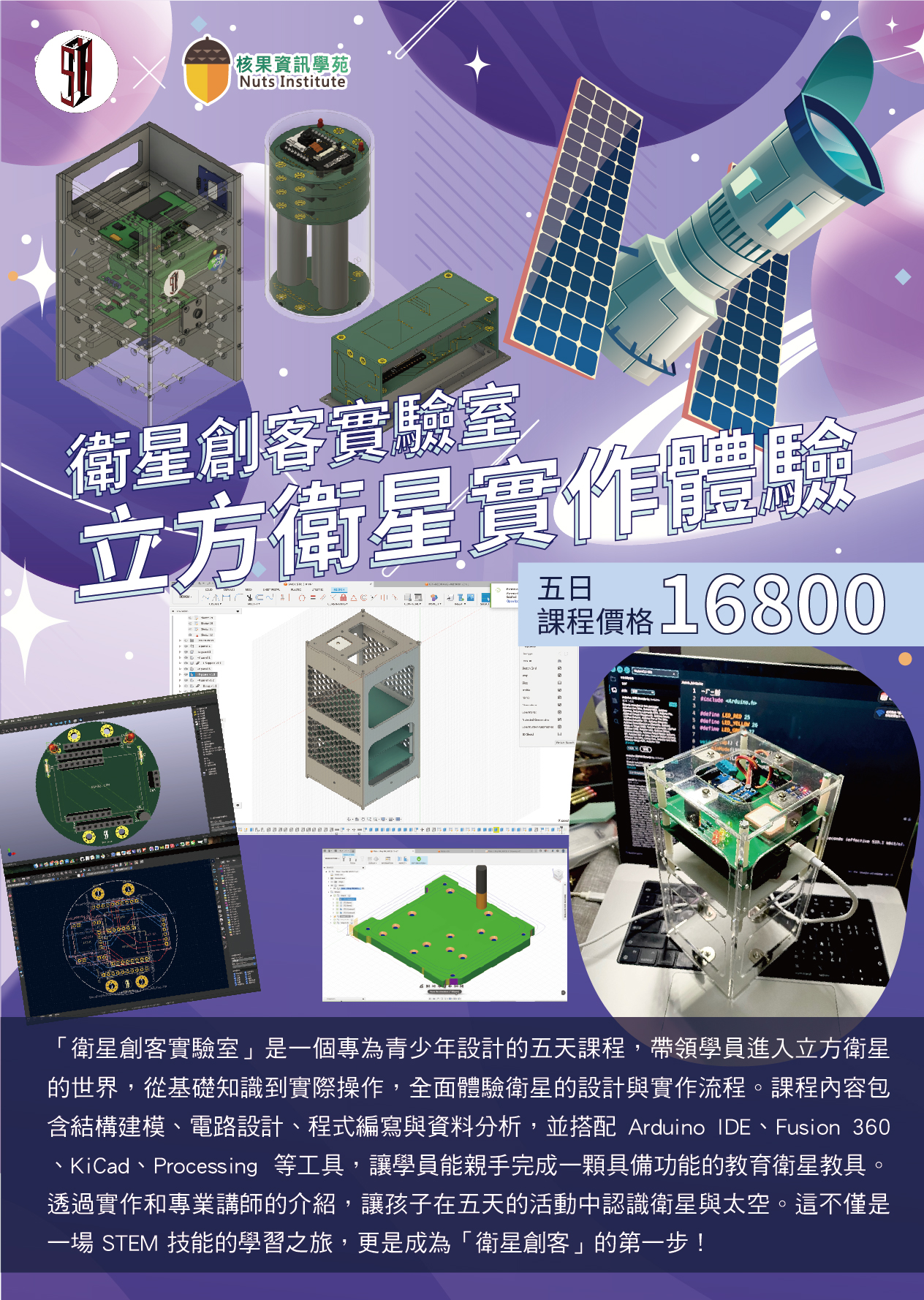 太空探索不再遙不可及!一周打造自己的立方衛星!對象:5 ~ 9 年級學生