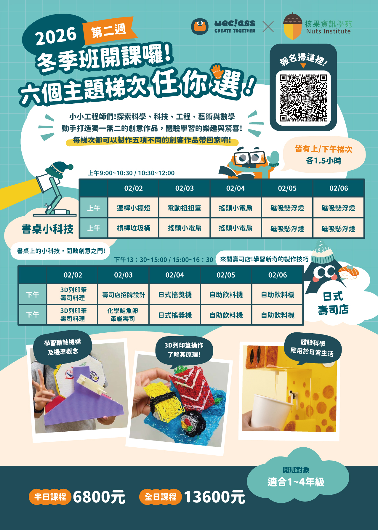 課程太豐富眼花撩亂了?請看我們幫您整理的 2026 冬季全日課程總表!