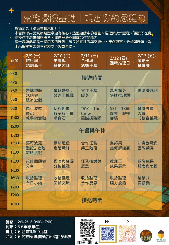 在遊戲中開啟智慧,在策略中啟動未來!對象:3 ~ 6 年級學生