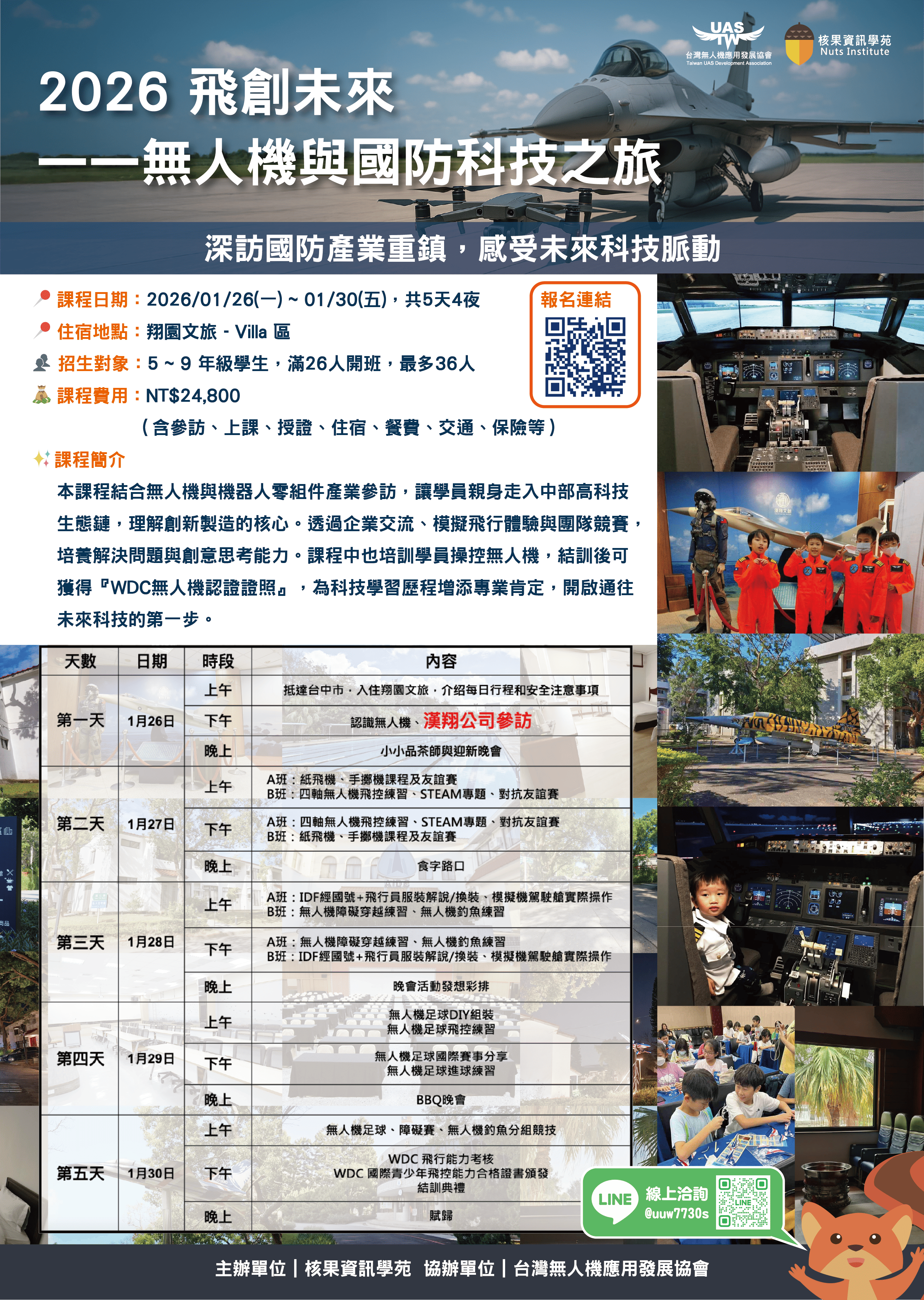 深訪國防產業重鎮,感受未來科技脈動!對象:5 ~ 9 年級學生